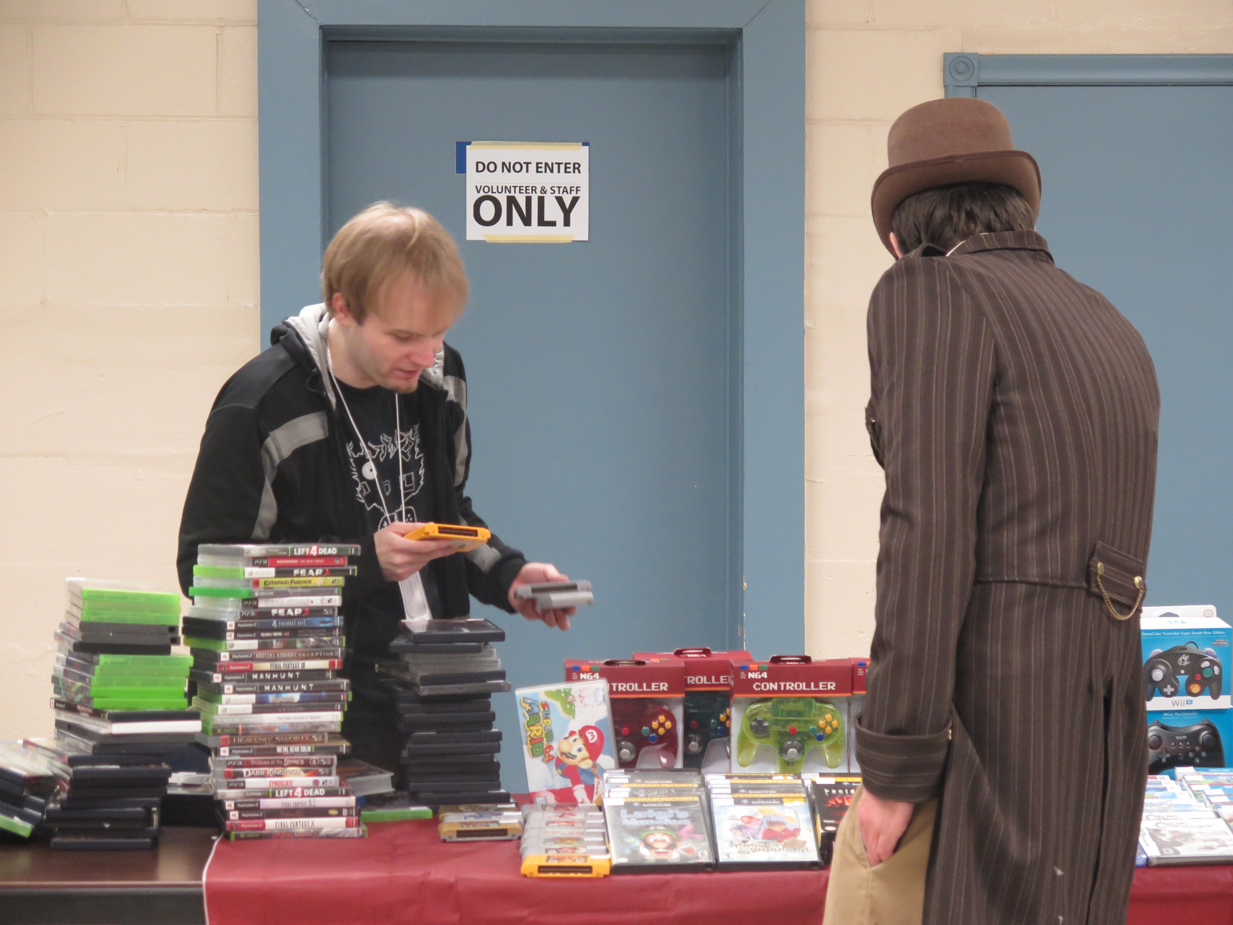 Devin checking out the games for sale.
