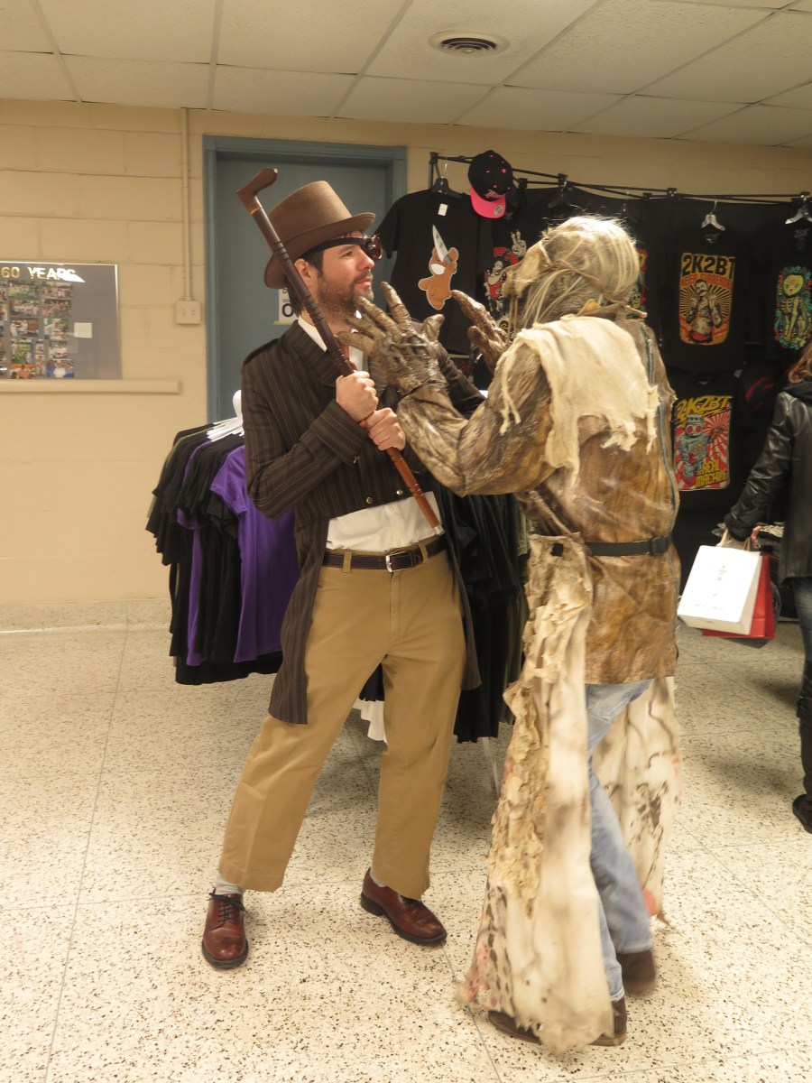 Devin fends off The Wretch with his cane.