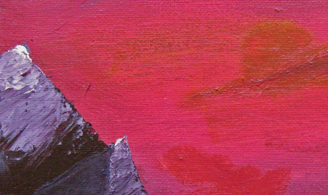 I like to think that’s what happened with the piece(s) I worked on today. I chopped up an old painting of a skull done on a piece of cardboard sketchbook backing (I like to use whatever I can as “canvases”) that had never quite worked, added it to a neat background that I’d never been able to find a subject for, added some details to tie the two together, and there it was, a quirky little piece about accepting the mad, scary world, Alice-in-Wonderland style.